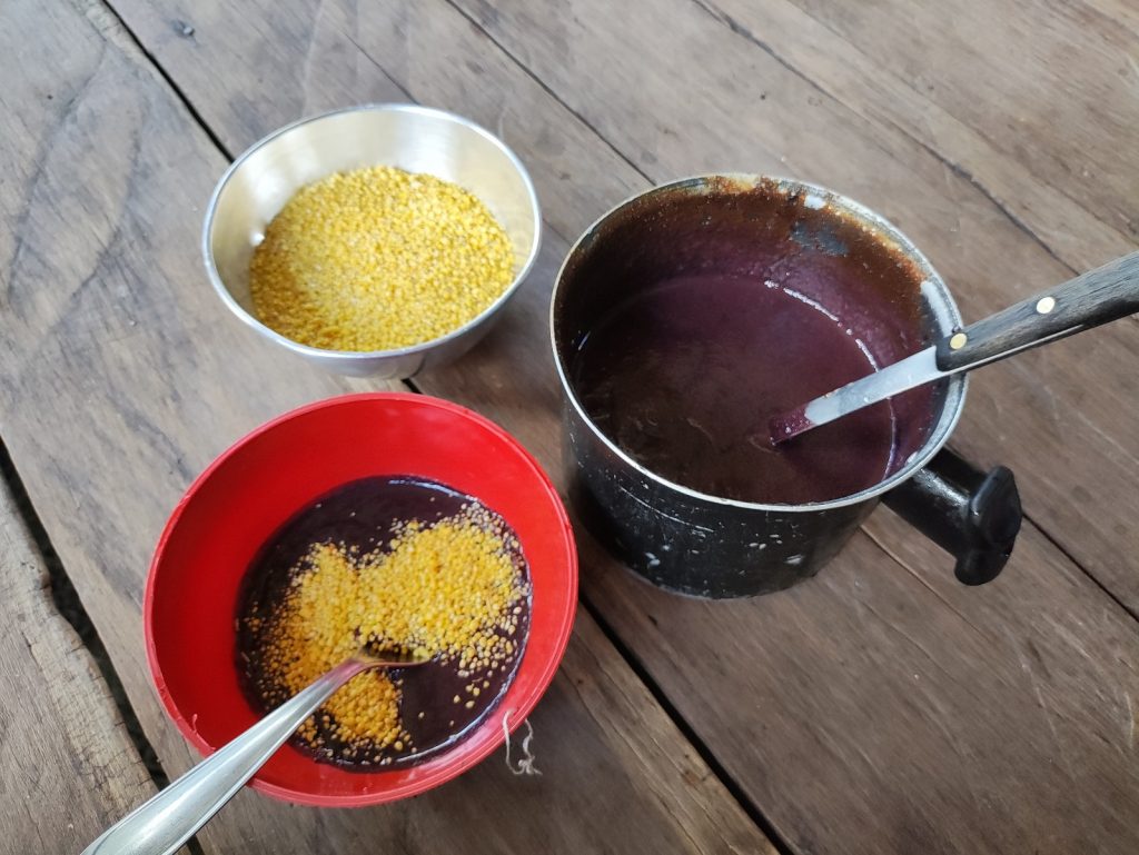 Essa etapa da pesquisa, desenvolvida entre os anos de 2023 e 2024, envolveu questionários aplicados a diferentes perfis dentro das comunidades — líderes comunitários, merendeiras e gestores das escolas, anciãos, cozinheiras (os) e unidades familiares — com destaque para as entrevistas com foco em questões socioeconômicas e na chamada “biografia alimentar”, realizada em cerca de 25% das casas de cada comunidade.