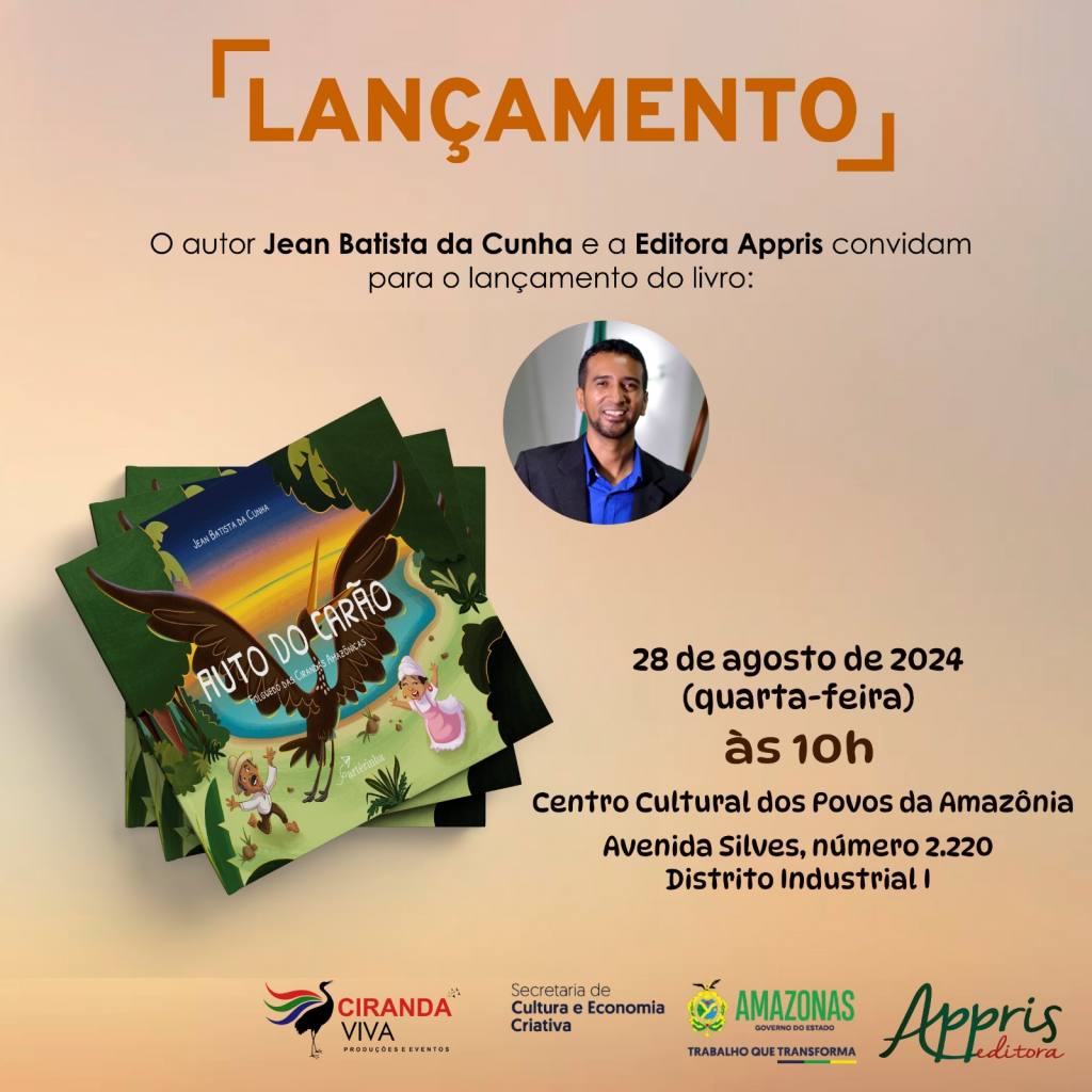 MANAUS (AM) – Ciranda é dança e tradição. Uma manifestação cultural enraizada há séculos no Amazonas que virou um resgate histórico e lúdico para as novas gerações com o livro infantil Auto do Carão: Folguedo das Cirandas Amazônicas, do pesquisador e mestre em Estudos Culturais, Jean Batista da Cunha. A obra literária, publicada pela Editora Appris, será lançada nesta quarta-feira, 28, às 10h, no Centro Cultural dos Povos da Amazônia, localizado na Avenida Silves, nº 2.220, no Distrito Industrial I.