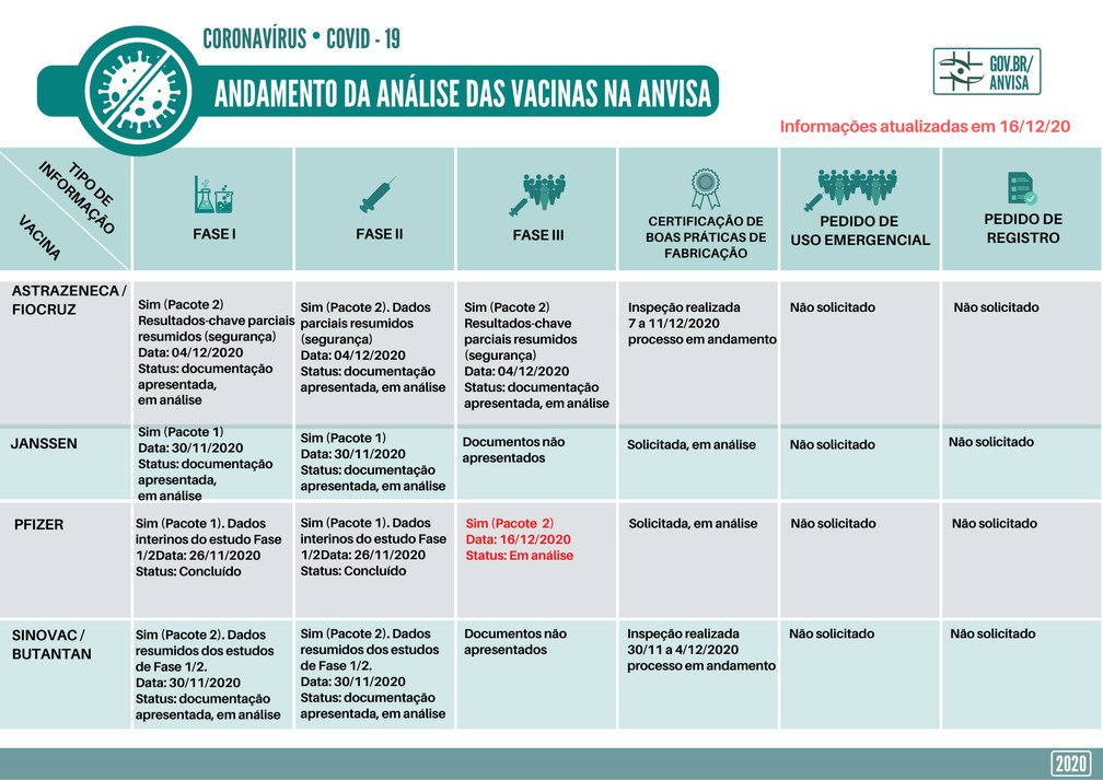 A Agência Nacional de Vigilância (Anvisa) informou nesta quarta-feira, 15, que a farmacêutica norte-americana Pfizer enviou os dados da fase 3 dos testes da BNT162b2, sua candidata à vacina contra a Covid-19.