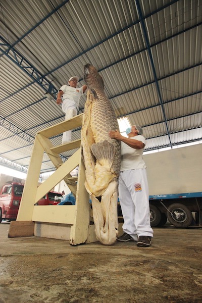 O pirarucu é o maior peixe de escama de água doce do mundo e exclusivo da Bacia Amazônica. Apesar de ser uma espécie resistente, os ninhos formados durante a seca ficam expostos e tornam o peixe bastante vulnerável à ação dos pescadores. O peixe se difere dos demais animais da espécie, que têm em média 2 metros e costumam chegar a até 250 quilos.