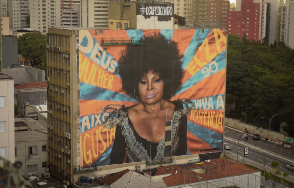 E hoje, no dia do seu aniversário de 90 anos, a obra receberá uma intervenção com fumaça colorida, lembrando a cor do arco-íris. Uma celebração à diversidade e à democracia, temas tão importantes na vida da Elza e cantados por ela há décadas.