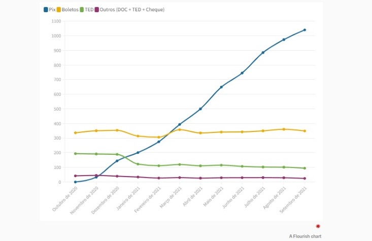 As transferências entre novembro de 2020 e outubro de 2021 já movimentaram quase R$ 4 trilhões.