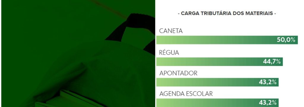 No início deste ano, a Globo por meio da Plataforma Gente, publicou estudo na qual apontou alta carga tributária de itens básicos de papelaria, como pasta plástica (40,1%) estojo (40,3%), apontador e agenda escolar (43,2%), régua (44,7%) e caneta (50%).