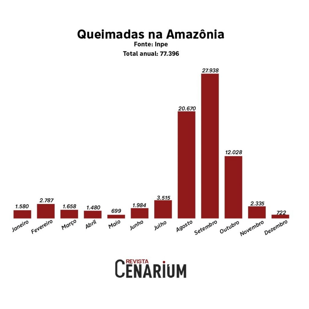 Os Estados com os maiores números de incêndios durante o “verão amazônico” foram o Mato Grosso – totalizando 38.426 mil focos de incêndio e o Pará, com 32.482 mil ocorrências de fogos. Conforme dados divulgados pelo Inpe, nesses meses foram registrados os picos de queimadas na região amazônica.