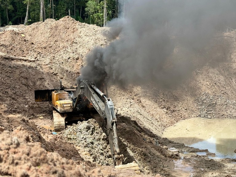 A operação desmobilizou nove garimpos e seis barracos. Foram apreendidos 12 motores bomba, um caminhão, cinco escavadeiras hidráulicas, 10 mil litros de óleo diesel e quatro caixas separadoras. As investigações seguem em andamento.