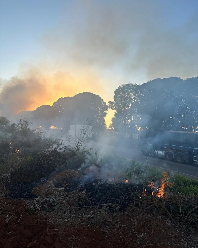 Durante a fiscalização, a equipe policial visualizou foco de incêndio de grandes proporções, acompanhado de intensa fumaça que comprometia significativamente a visibilidade dos condutores na principal rodovia federal do estado. No local, os policiais identificaram um dos suspeitos utilizando uma vara para expandir as chamas com o objetivo de limpar a vegetação na frente de uma propriedade rural.