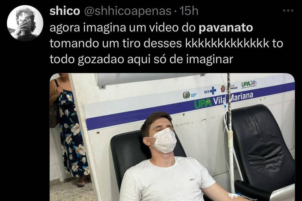Numa das postagens, ele mostra uma foto do vereador sentado doando sangue, com a legenda: “agora imagina um vídeo do Pavanato tomando um tiro desses, kkkkk. To todo gozadão aqui só de imaginar”.