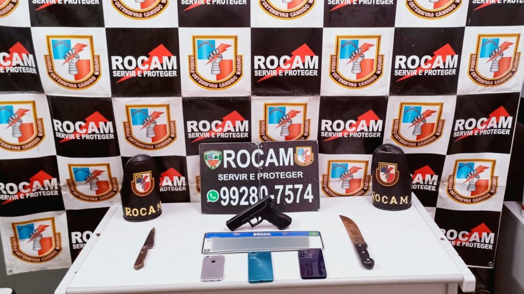 Segundo a Polícia Militar (PM), uma equipe realizava patrulhamento quando o motorista do veículo verbalizou por socorro, pois estava sendo sequestrado. Durante a abordagem na Avenida Coronel Teixeira, bairro Santo Agostinho, na Zona Oeste da capital, foram encontrados simulacro de pistola cor preta e duas armas brancas.