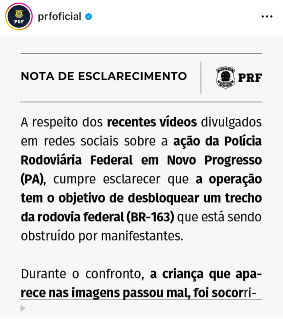 Assim que chegaram ao local, os agentes da PRF foram recebidos com xingamentos e palavras de ordem. O tom aumentou e os manifestantes passaram a atacar as viaturas com paus, pedras, rojões, tiros de arma de fogo e outros objetos atirados contra os policiais. A equipe da PRF revidou com disparos de aviso. O desfecho violento veio acompanhado de euforia por parte dos extremistas que comemoravam o confronto. Em determinado momento, um deles chegou a gravar no celular, imagens do conflito. “Aqui é Novo Progresso! Aqui não!” gritavam exultantes.