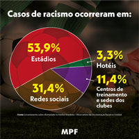 “O levantamento trouxe dados expressivos sobre a discriminação racial como, por exemplo, 41% dos jogadores negros que atuam nos principais campeonatos do País afirmarem já terem sido vítimas de racismo. Os resultados evidenciam os ambientes mais nocivos para a prática, como o estádio (53,9% dos casos) e as redes sociais (31,4% dos casos), mas também alertam para a prática em outros espaços de atuação dos atletas, como centros de treinamento e sedes dos clubes (casos denunciados por 11,4% dos participantes), mostrando que a prática é enraizada e demanda atuação em diversos níveis para ser efetivamente combatida.