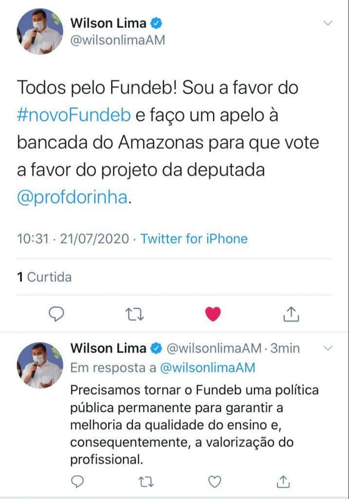 MANAUS – O governador do Amazonas, Wilson Lima (PSC) se manifestou nesta terça-feira, 21, favorável ao novo Fundo de Manutenção e Desenvolvimento da Educação Básica e de Valorização dos Profissionais da Educação (Fundeb), por meio das redes sociais. A declaração de Lima vem no mesmo dia em que o presidente da Câmara Federal, deputado Rodrigo Maia (DEM-RJ) disse que o projeto deverá ser colocado em pauta ainda esta semana.