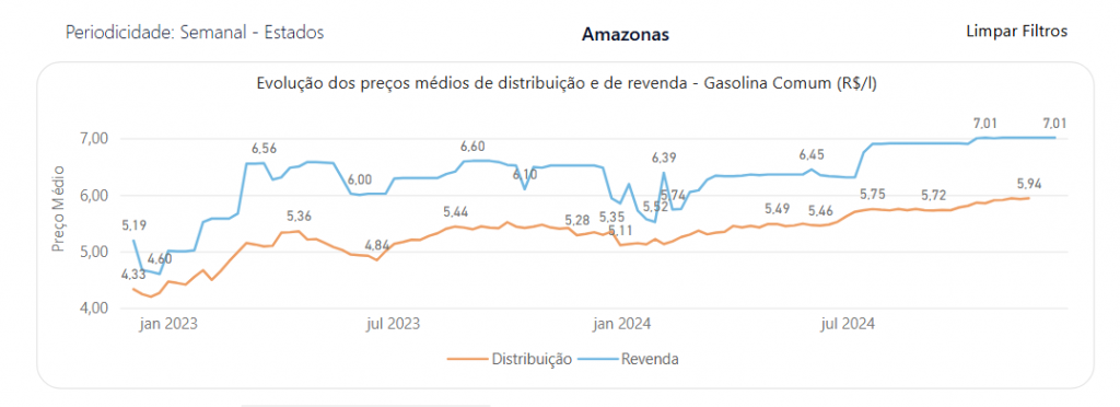 Apesar da redução do preço na refinaria, a gasolina nos postos de combustíveis segue sendo vendida a R$ 6,99. O valor foi reajustado em 12 de outubro de 2024. Desde a privatização da Ream, ocorrida em dezembro de 2022, o aumento do preço da gasolina para o consumidor amazonense foi de 36.65%. Os dados foram consultados pela CENARIUM na Agência Nacional de Petróleo (ANP).