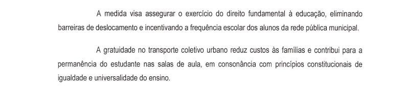 A justificativa do PL enviado à CMM é de que “a medida visa assegurar o exercício do direito fundamental à educação” e que “a gratuidade no transporte coletivo urbano reduz custos às famílias e contribui para a permanência do estudante nas salas de aula”.
