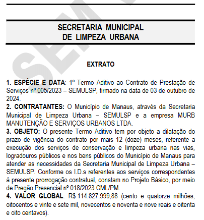 E ao que tudo indica essa parceria milionária entre a gestão de David Almeida e a empresa Murb deve continuar pelos próximos anos. Tendo em vista que na última quinta-feira, 31, foi publicado no Diário Oficial do Município (DOM) a renovação de um contrato no valor de R$ 114 milhões de reais com a empresa, até outubro de 2025. Somando os valores já pagos com esse novo aditivo, os repasses do município para a empresa de José Curcino devem ultrapassar R$ 334 milhões de reais em um período de quatro anos (2022 – 2025).