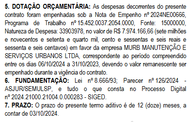 A Murb entrou na folha de pagamento da Secretaria Municipal de Limpeza Urbana (Semulsp) em 2022, após a saída da empresa Mamute deste serviço, ano em que recebeu cerca de R$ 35,7 milhões, sendo que parte desse dinheiro foi pago via processo indenizatório (R$ 12,2 milhões) e o restante por meio de um contrato feito de forma emergencial e sem licitação (R$ 23,5 milhões).