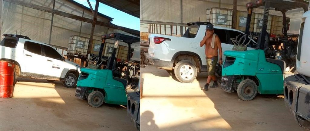 A reportagem teve acesso às imagens que mostram o político em um estabelecimento comercial que, de acordo com os moradores de Tonantins, é uma olaria na qual o prefeito é proprietário. A foto mostra o chefe do Executivo municipal sem camisa ao lado do utilitário.