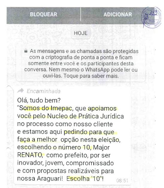 Conforme o Ministério Público Federal (MPF), o Imepac pediu votos de forma explícita para o prefeito, que passou a ser investigado, com funcionários e o reitor do Imepac, o senhor José Julio Antunes Lafayette S M R Pereira. Uma das estratégias usadas durante o pleito foi o disparo em massa de mensagens via WhatsApp para pessoas assistidas pelo Núcleo de Prática Jurídica da instituição de ensino.