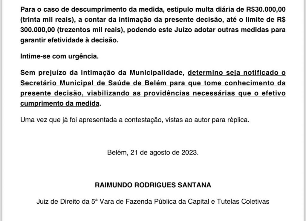 A ordem judicial, proferida no último dia 21, decorre de uma Ação Civil Pública (ACP) movida pela 3ª Promotora de Justiça de Direitos Constitucionais Fundamentais e dos Direitos Humanos de Belém (PJ da Saúde), Fabia de Melo-Fournier. A ação foi julgada totalmente procedente pelo juízo da 5ª Vara da Fazenda Pública.