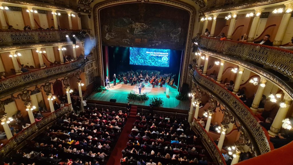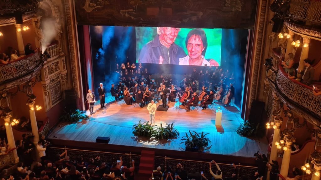 MANAUS – O cantor Roberto Carlos recebeu na noite desta segunda-feira, 27, no Teatro Amazonas, o prêmio “United Earth Amazônia“, que visa reconhecer o melhor da Amazônia e do Brasil nas áreas de arte, música e iniciativas de responsabilidade socioambiental e governança (ESG). Além do artista nacional, o prêmio também foi dado ao cantor Erasmo Carlos, in-memoriam, (recebido pelo filho do cantor) e para mais seis projetos desenvolvidos na Amazônia, todos eles, iniciativas de responsabilidade socioambiental e governança.