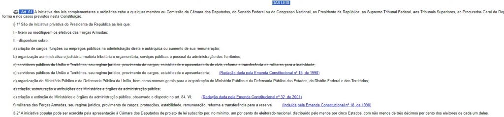 Os consultores jurídicos consultados pela reportagem argumentam que a Constituição Federal, em seu artigo 61: § 1º:“estabelece que leis que disponham sobre o regime jurídico dos servidores públicos, criação de cargos, funções ou empregos públicos, e aumento de sua remuneração, são de iniciativa privativa do Presidente da República no âmbito federal. Esse princípio é reproduzido em âmbito estadual e municipal, onde tais matérias são de iniciativa privativa dos Governadores e Prefeitos, respectivamente”.