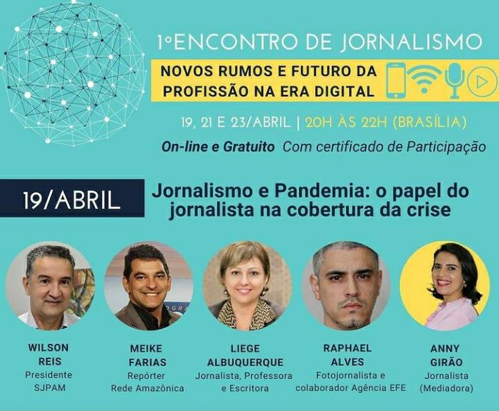 MANAUS – O presidente do Sindicato dos Jornalistas Profissionais do Amazonas (SJPAM), Wilson Reis, é um dos palestrantes do primeiro dia do “1º Encontro de Jornalismo: novos rumos e futuro da profissão na era digital”, que inicia na próxima segunda-feira, 19. Na abertura do evento, Wilson vai debater, junto com quatro profissionais da área, o tema “Jornalismo e Pandemia: o papel do jornalista na cobertura da crise”. O evento ocorre até o dia 23 de abril.