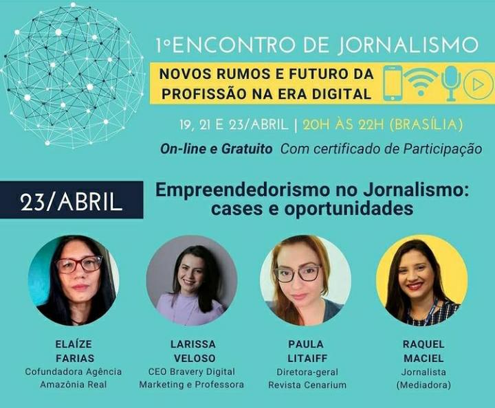 O evento começa na segunda-feira, 19, com a participação de dez profissionais da comunicação. Entre os participantes, estão a diretora-executiva da REVISTA CENARIUM, Paula Litaiff; a diretora-geral do Canal MyNews, Beatriz Prates; o cofundador e editor-chefe do Nexo Jornal, Conrado Corsalette; a cofundadora da Agência Amazônia Real, Elaíze Farias.