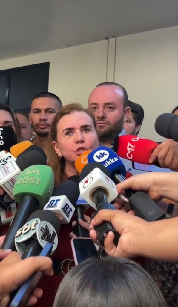 “Nesse momento não está aqui a conselheira, está aqui uma mulher que foi covardemente agredida no Tribunal de Contas, dentro do plenário, antes da eleição, para me desestabilizar. Eu, quando estava no plenário, fui cumprimentar o conselheiro Ari e disse: ‘Bom dia’. Ele disse: ‘Bom dia, nada. Safada, puta, vadia. Eu vou te fuder“, relatou a presidente eleita, em coletiva de imprensa.