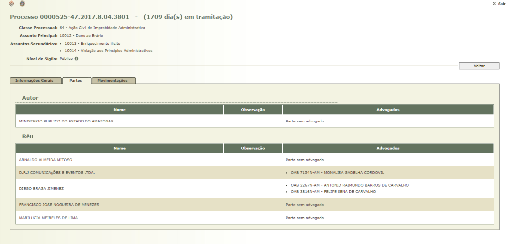 Em consulta ao Tribunal de Justiça do Amazonas, o processo aberto em 2017 pelo Ministério Público segue em tramitação com algumas partes sob segredo de Justiça, mas segundo a última atualização dos autos, existe um despacho datado do dia 6 de agosto de 2022 para nova citação de alguns requeridos. Em janeiro, Diego apresentou defesa sobre o processo.