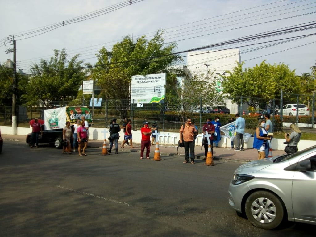 O ato desta terça, organizado pelo Sindicato dos Professores e Pedagogos de Manaus (Asprom/Sindical), iniciou por volta das 8h30 e solicitou novamente uma audiência pública com o governador do Estado, Wilson Lima (PSC).