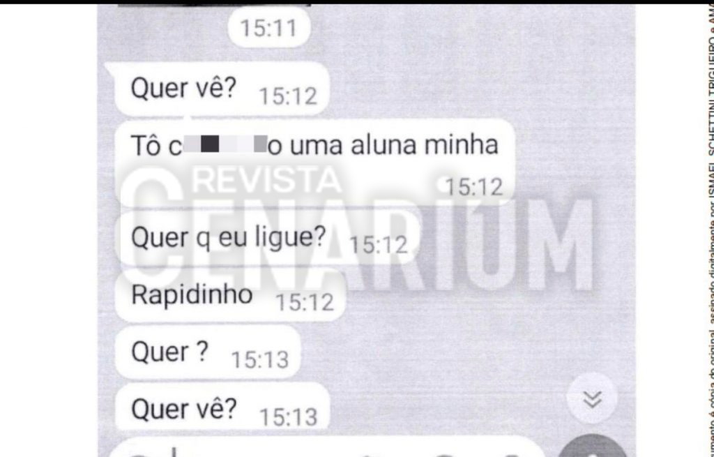 A CENARIUM teve acesso ao conteúdo das mensagens enviadas pelo acusado para a vítima. Em um trecho, ele afirma que deseja ter relações sexuais. Após a insistência do professor, ela pede que ele pare e manifesta indignação com o conteúdo da conversa e as chamadas realizadas por ele. Veja os registros de tela: