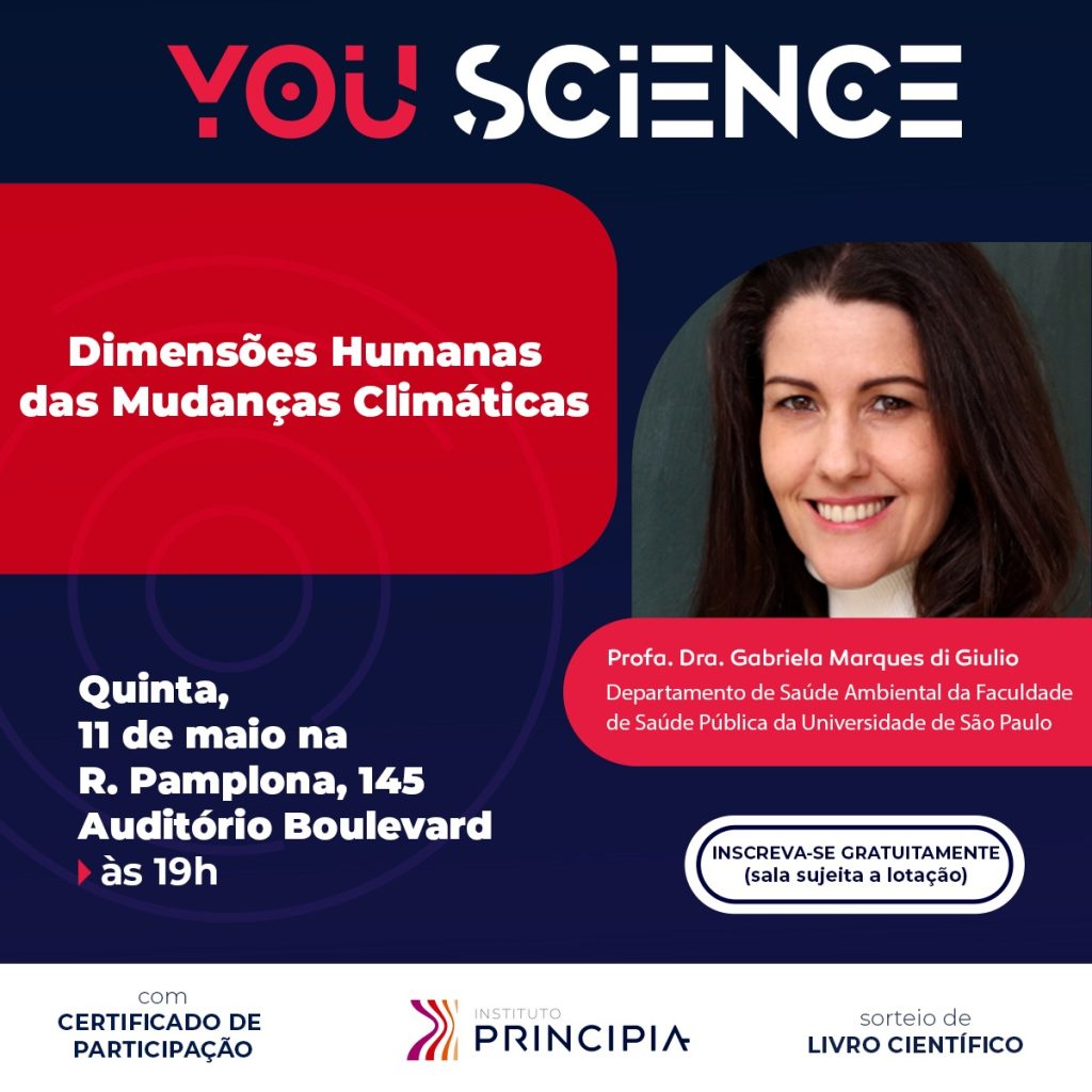 Para tratar desse assunto, o Instituto Principia convidou a professora e pesquisadora do Departamento de Saúde Ambiental da Universidade de São Paulo (USP), Gabriela Marques di Giulio, para participar da edição de maio do YouScience – programa de Orientação Vocacional e Divulgação Científica realizado pelo Instituto Principia – que acontece nesta quinta-feira, 11, às 19 horas, no auditório da instituição.