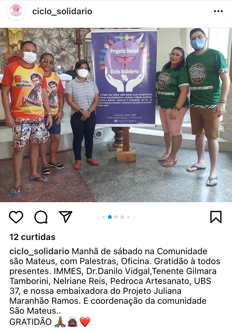 “O Ciclo Solidário não é só a doação de absorventes, mas acima de tudo: educação, informação, prevenção e empreendedorismo, porque junto conosco também tem os nossos parceiros que levam oficinas a elas, para que possamos ajudar elas a saírem da vida ociosa. Futuramente, tenho certeza que elas estarão no mercado de trabalho, informal ou formal, mas que sejam protagonistas da história delas”, continuou a idealizadora do Ciclo Solidário.