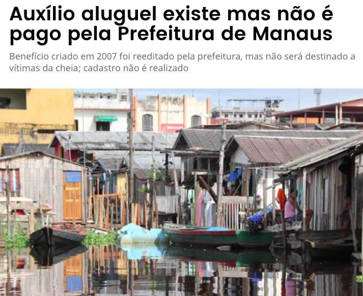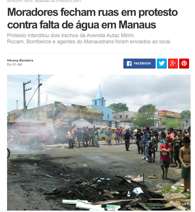 “Nessa onda, a gestão de Amazonino é alvo dos candidatos a prefeito. Eles exploram o problema de abastecimento de água na cidade, criticam o sistema de saúde e a suposta falta de creches”, diz um trecho da matéria do O Globo de 2012.