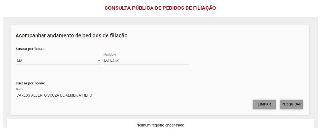 Em consulta pública ao site nacional do PT, o pedido de filiação partidária com o nome de Carlos Almeida Filho não foi divulgado. No site do Tribunal Superior Eleitoral (TSE), também não foi possível encontrar dados que confirmem a ligação recente de Almeida.