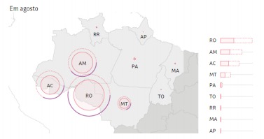 Os dados revelam como a poluição decorrente das queimadas amazônicas tem um efeito crônico perverso sobre a população que é explicada por uma específica geografia do fogo. Os municípios mais afetados, em diferentes Estados, indicam a expansão do arco do desmatamento.