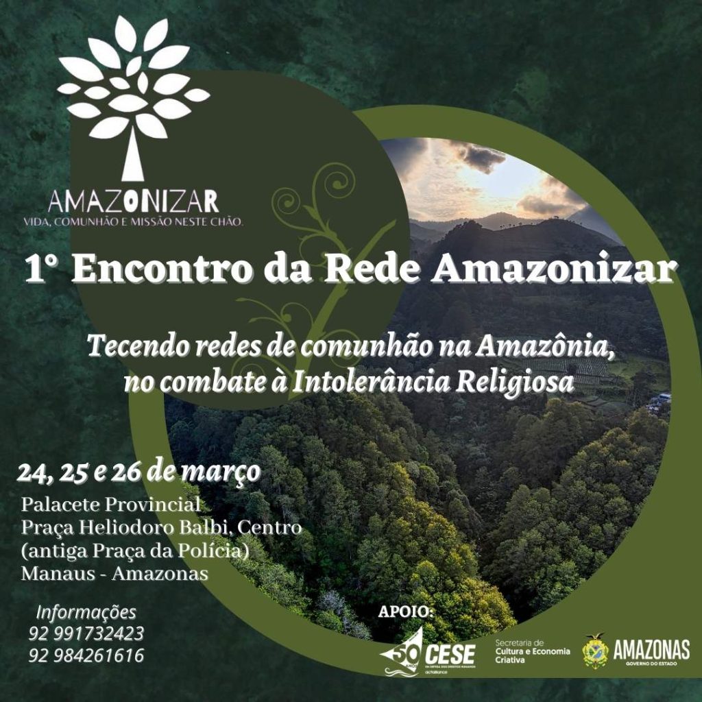 MANAUS – Com o objetivo de promover o combate à intolerância religiosa e chamar a atenção do governo e da sociedade em geral para os problemas da Região Amazônica, a Rede Ecumênica Amazonizar vai realizar, de 24 a 26 de março, um encontro inter-religioso, juntamente com os povos tradicionais e originários da região. A programação será no Palacete Provincial, localizado na Praça Heliodoro Balbi, Centro de Manaus, a partir das 19 horas.