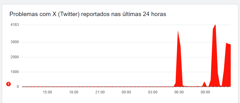 O site comunica apenas um incidente quando o número de relatórios de problemas é significativamente superior ao volume habitual a essa hora do dia. É possível ver que, após às 9h, o pico de relatórios alcançou 4.183 reclamações.