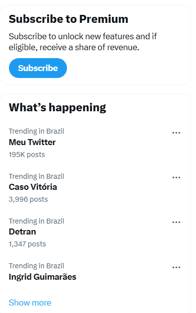 Apesar de não carregar as publicações, o assunto “Meu Twitter”, como a rede social ainda é chamada, ficou entre os assuntos mais comentados no X. Segundo o Downdetctor, o X está fora do ar no Brasil, Estados Unidos e em outros países. Há relatos na Europa, Ásia, África e América do Sul, incluindo Argentina e Chile.