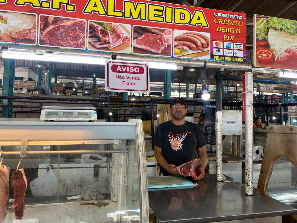 O açougueiro Edmilson Araújo, que trabalha há mais de 50 anos no histórico Mercado Municipal Adolfo Lisboa, no Centro de Manaus, Zona Sul da cidade, afirma que, antes, havia muita procura por osso e miúdos, mas, agora, carnes de segunda e primeira saem mais. Ele comemora o retorno do poder de compra.