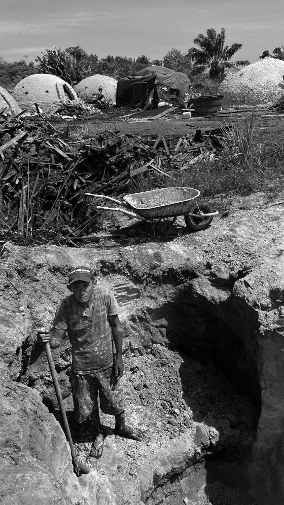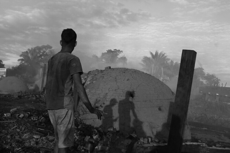 “Aqui eu trabalho sem carteira porque me deixa mais livre, tem dias que tô (sic) aqui, tem dias que construo forno em outros distritos e, assim, eu me sustento”, explica. O trabalhador saiu do Maranhão ainda criança com a família e chegou a Roraima, onde começou a ajudar na construção de fornos e na produção de carvão, ainda aos 10 anos.