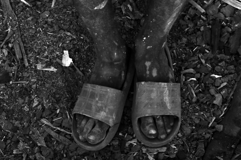 Assim como Domingos, Jorge Pinheiro Nascimento, 47, saiu de sua terra natal para trabalhar em Rorainópolis. Natural de Itacoatiara, a 175 quilômetros da capital do Amazonas, Manaus, Jorge não tem perspectivas de mudança de vida e trabalha exclusivamente para sobreviver. Quando a reportagem chegou ao local, Jorge descarregava um forno com carvão pronto. Sem máscara, luvas ou quaisquer equipamentos de segurança, Jorge carrega no rosto e nas mãos as marcas do trabalho fatigante.