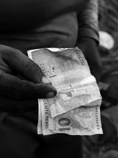 Graça relata que sobrevive do dinheiro que recebe trabalhando no local. Mãe, pai e filhos ganham entre R$ 70 e R$ 120 por dia trabalhado. Se não trabalharem, não recebem nada. A família relata que há dias em que a renda é de apenas R$ 20.