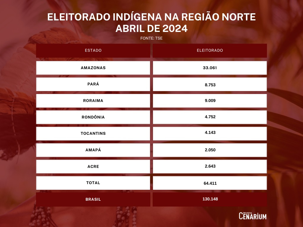 O número representa aumento de 26% em comparação ao mês de março, quando os eleitores indígenas da região eram 50 mil. No ranking entre os Estados, o que tem o maior eleitorado autodeclarado indígena é o Amazonas, com 33 mil. O Acre concentra o menor número, com 2,6 mil indígenas. Em todo o País, são 130 mil indígenas aptos a votar.