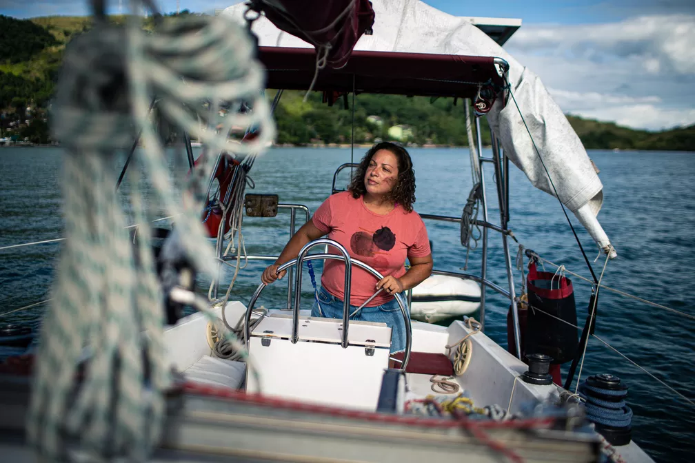 “Eu me sinto respeitada no meio náutico, mas sempre procuram um homem para estar à minha frente. É chocante, mas aprendi a ignorar e hoje ofereço cursos a bordo e regatas (competições de vela) só para mulheres. Muitas têm embarcações por se inspirarem umas nas outras e verem que é possível ser mulher, consertar peças de barcos, mexer com elétrica e viver no mar”, afirma Carina, acrescentando que a questão racial é um preconceito que vem logo depois da misoginia.