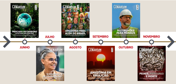As edições impressas da REVISTA CENARIUM, que abordaram os temas citados, também são lembradas. Entre eles estão: o impacto do garimpo na vida dos indígenas Yanomami, em Roraima; a crise habitacional na Amazônia e os desastres naturais na região; o artigo científico assinado por oito pesquisadores sobre desinformação na pandemia; entrevista exclusiva com a ministra do Meio Ambiente e Mudança do Clima, Marina Silva; a ebulição global; e a contaminação de peixes e rios pelo mercúrio usado no garimpo ilegal.