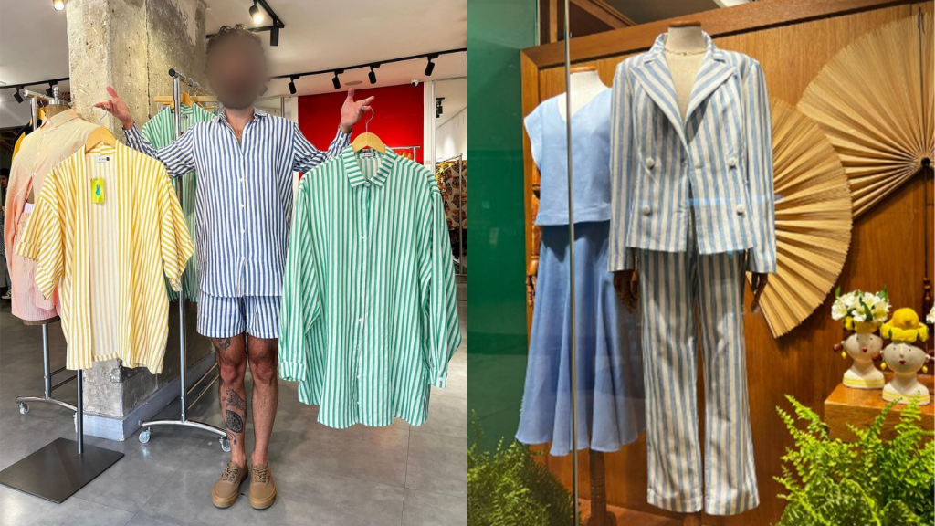 A popularidade de peças listradas tem tomado as vitrines das lojas nesta temporada, e o caso da Riachuelo não foi o único registrado. Recentemente, as lojas Calma e Souq também divulgaram estampas similares, com cortes diferentes. O modelo vendido pela Calma apresenta listras menores, com shorts no lugar da calça longa. Já a Souq traz as mesmas listras largas, com um corte diferente para a peça.