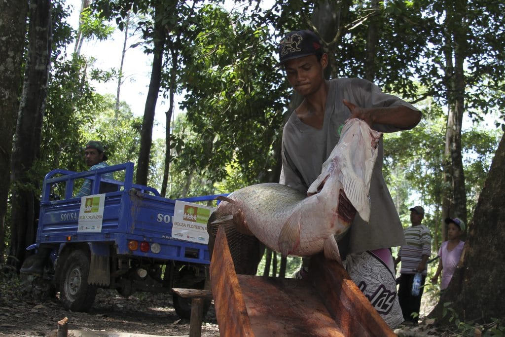 MANAUS – O pirarucu, espécie de peixe de água doce que passou anos sob sério risco de extinção, também é uma rica fonte de alimento e renda para populações ribeirinhas do Amazonas que praticam o manejo sustentável. Tendo em vista seu potencial ecológico e socioeconômico, a Fundação Amazonas Sustentável (FAS) recebeu em maio deste ano R$ 100 mil como doação para investir em um projeto de manejo do pirarucu, aumentando a capacidade produtiva do pescado.