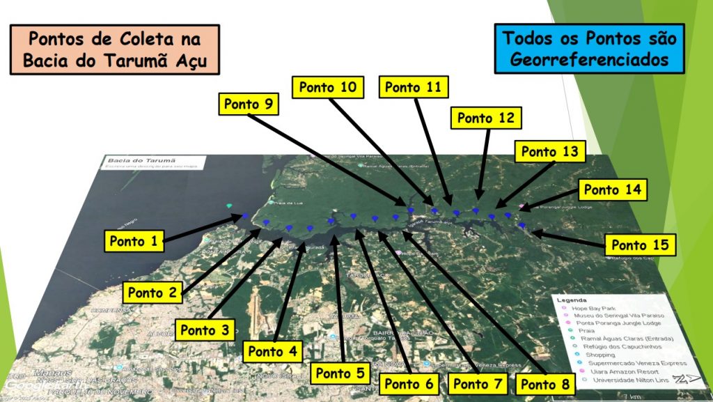 “A parte espacial também é muito importante, não adianta chegar num ponto só específico e fazer análise. O nosso objetivo, no monitoramento das bacias, é fazer a maior extensão possível da bacia. Então, no Tarumã-a-Sul, a gente tem 15 pontos de coleta, desde a sua foz até o Alto Tarumã-Açu. E, além disso, de tempos em tempos, de três em três meses é feita a análise, e com os mesmos parâmetros”, enfatizou o especialista.