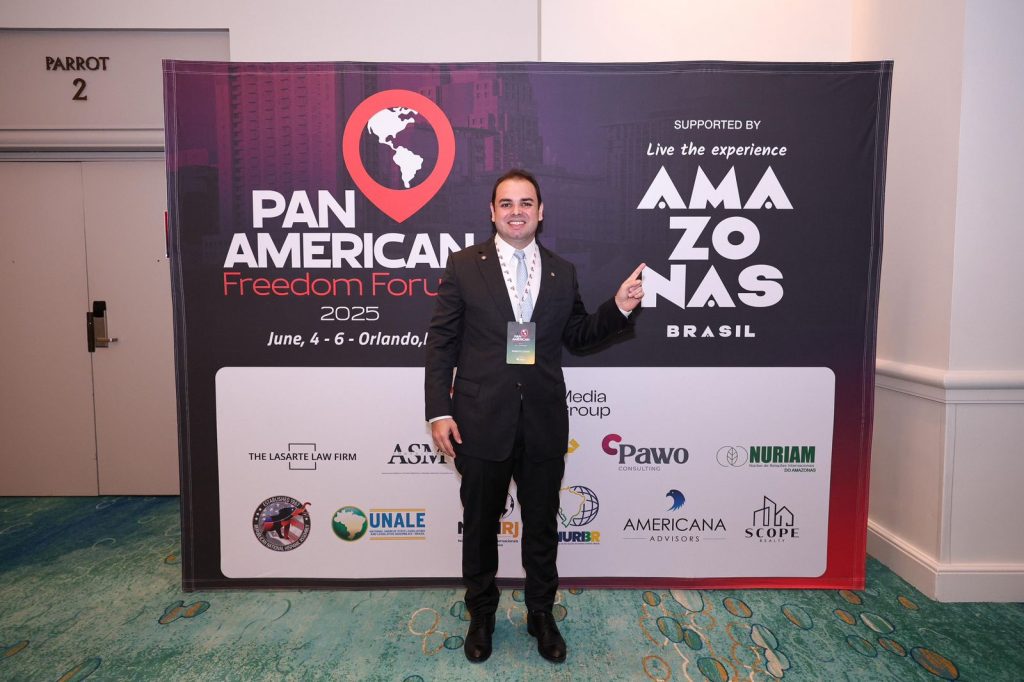 MANAUS (AM) – O presidente da Assembleia Legislativa do Amazonas (Aleam), deputado Roberto Cidade (UB), participou como palestrante do Pan American Freedom Forum 2025 (PanamForum), realizado de 4 a 6 de junho, em Orlando (EUA). Representando o Amazonas naquele que é considerado o maior encontro continental voltado à capacitação de líderes e à defesa das liberdades democráticas nas Américas, o parlamentar abordou temas como preservação ambiental, desenvolvimento econômico e social, e liberdade de expressão.