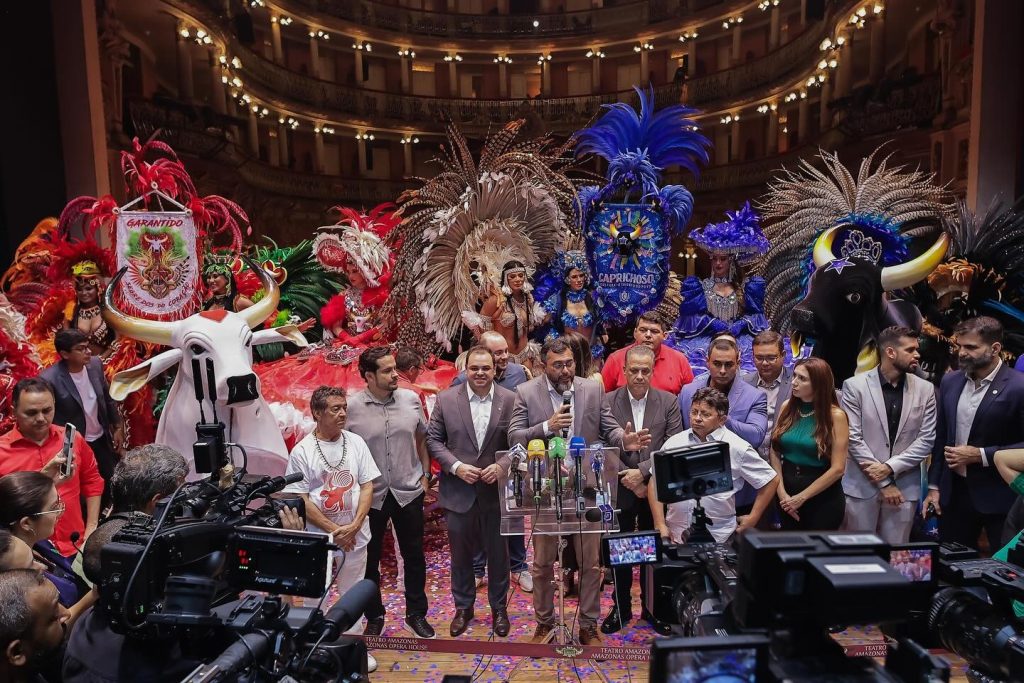 MANAUS (AM) – A poucas horas do ato político que marca a posse do presidente da Assembleia Legislativa do Estado do Amazonas (Aleam), deputado estadual Roberto Cidade, como presidente municipal do União Brasil, o pré-candidato à Prefeitura de Manaus registrou presença no lançamento do 57º Festival Folclórico de Parintins, ao lado do governador do Estado e correligionário, Wilson Lima, e do deputado federal Capitão Alberto Neto (PL), também pré-candidato à sucessão do atual prefeito de Manaus, David Almeida (Avante).